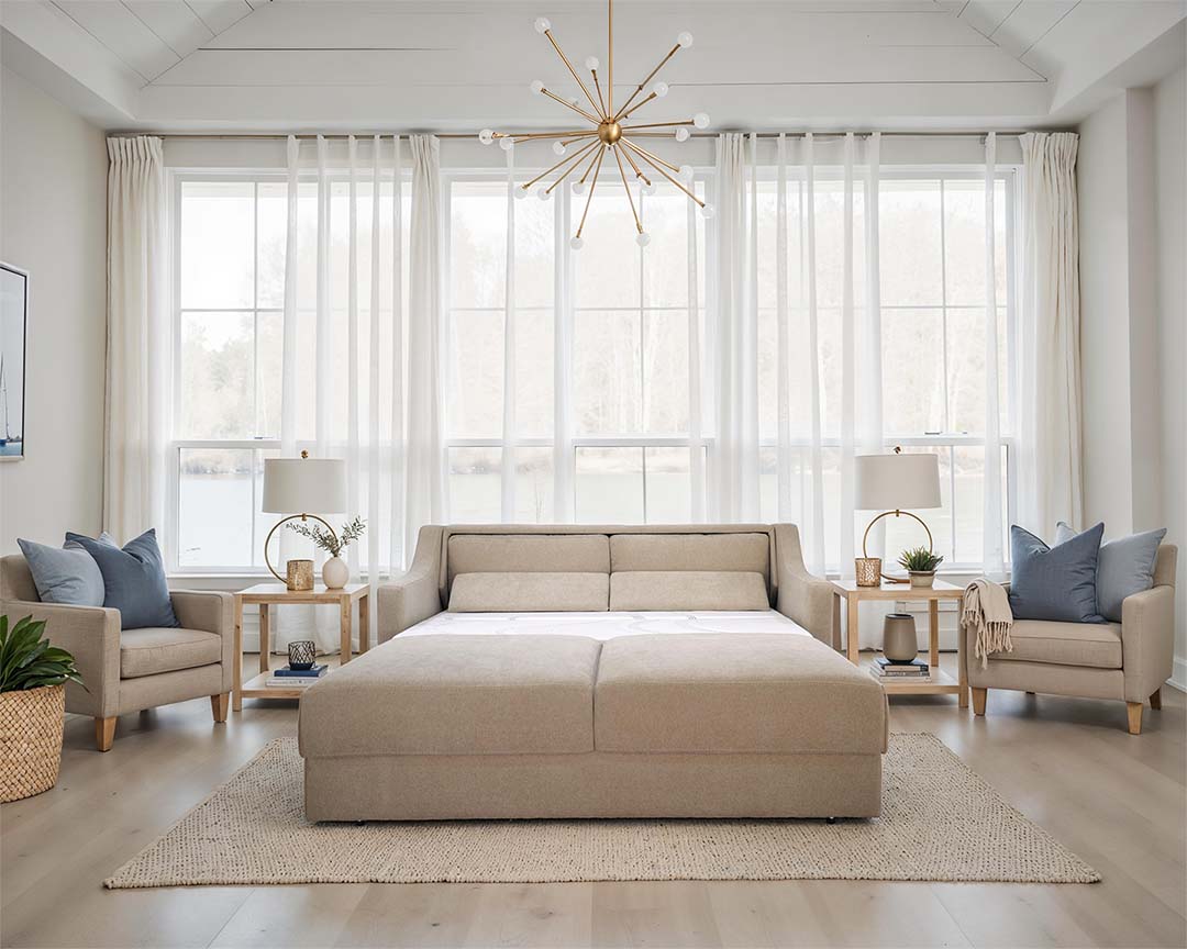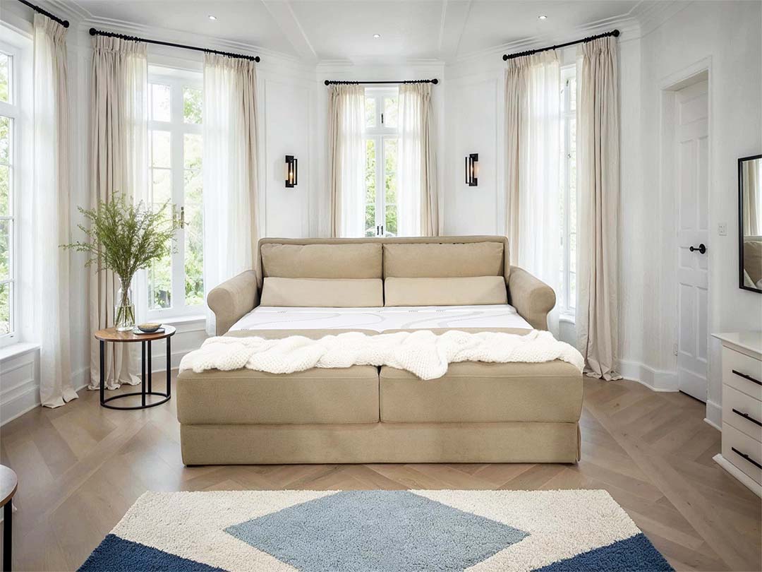 Our engineers have perfected the art of blending style and comfort – seamlessly combining a sleek sofa with a luxurious sleeper, using our premium flow-mechanism, providing unparalleled sitting comfort and a rejuvenating sleep experience.